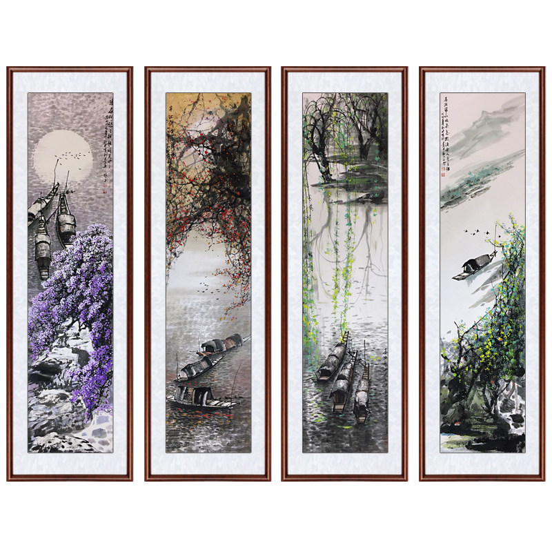 (Four spring, summer, autumn and winter) Painting core (giving Aya silk soft frame) Hang Shunfeng (spring) (framed wood frame) Fast feife pack installation (summer) (framed solid wood frame) feift bag mounting (winter) core