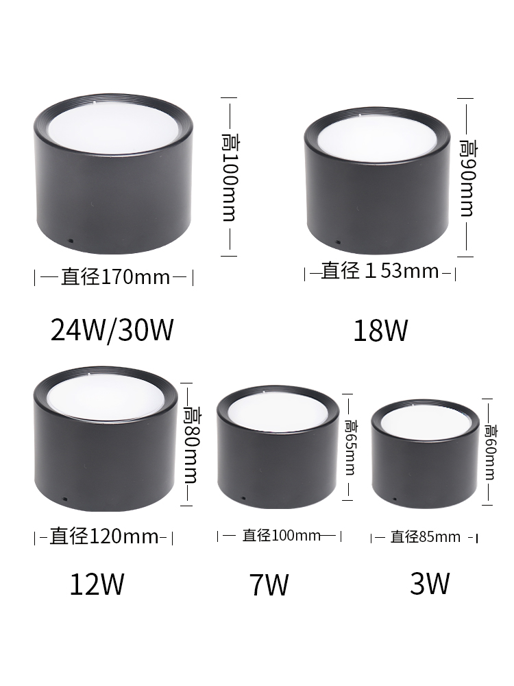 LED-12W black shell white light (120 *H80) required suspension wire type Please contact customer service LED-18W black shell white light (153 *H90) COB-30W