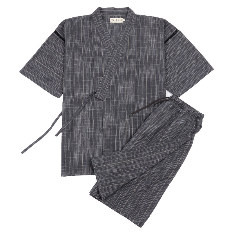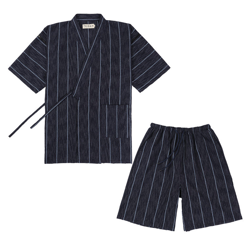 2022 summer thin men's large size pajamas washed cotton short-sleeved shorts home service Japanese antique stripes