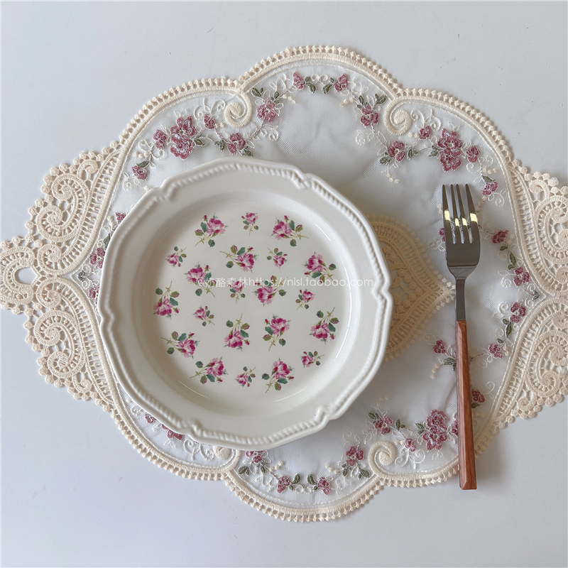 French Romantic Lace Embroidery Retro Dining Mat Table Mat Cups Cushion s Wind Cloth Art Table Decoration Photo Props
