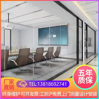 Office high partition glass partition wall tempered aluminum alloy screen hollow Louver frosted double glass sound insulation wall