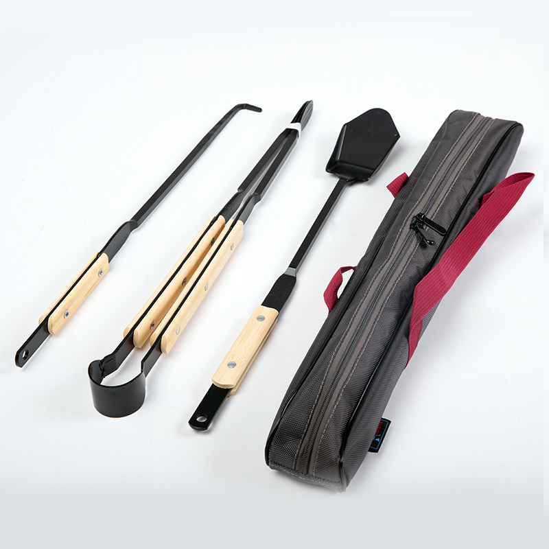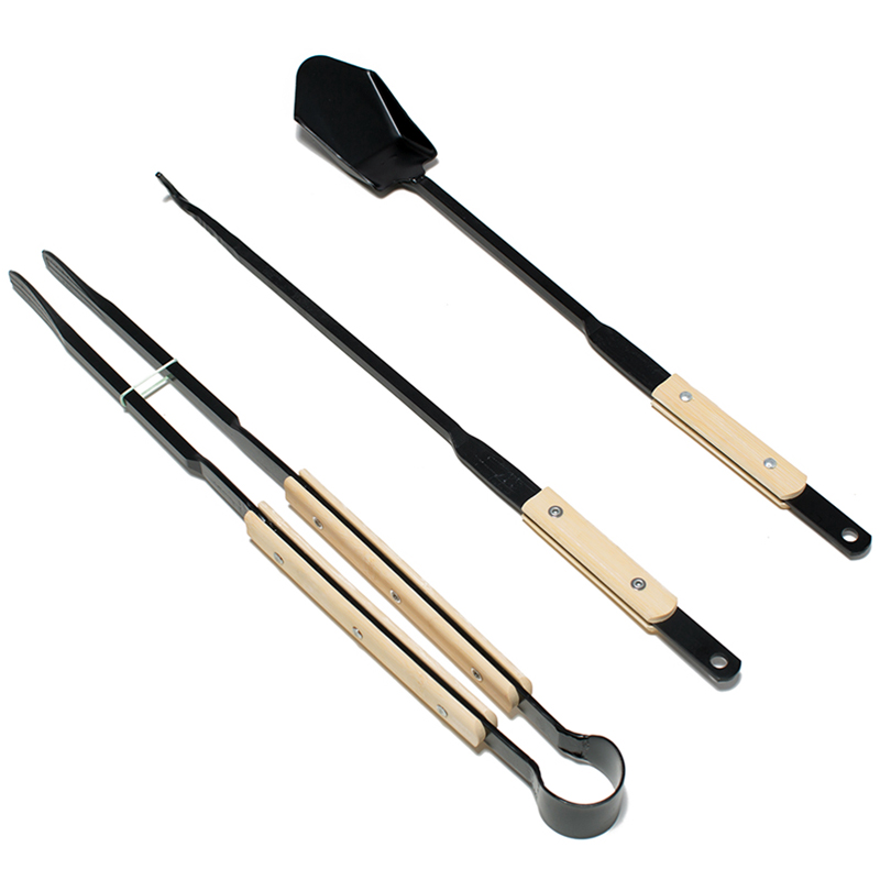 TNR outdoor Japanese-style bamboo handle anti-scalding carbon steel barbecue camping campfire clip fire shovel fire hook fire pliers three pieces