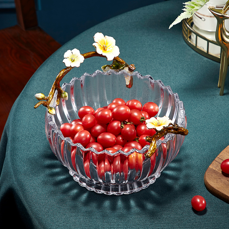 Light luxury style enamel color fruit plate European-style dining room coffee table crystal glass decoration living room desktop fruit basin decoration