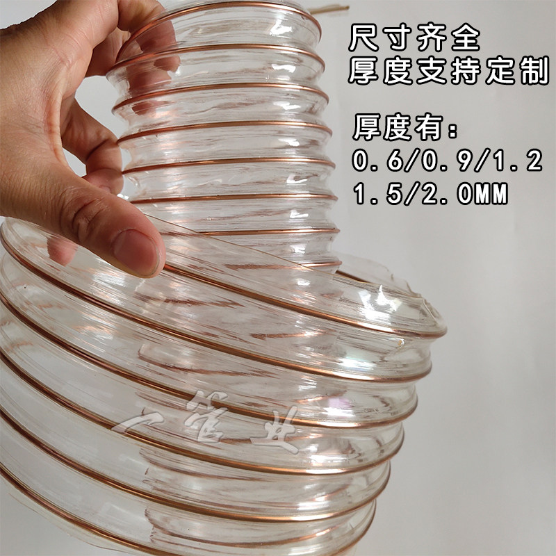 PU polyurethane copper plated steel wire transparent wind pipe industrial sweeping car suction dust suction wood dust collection thickened telescopic hose