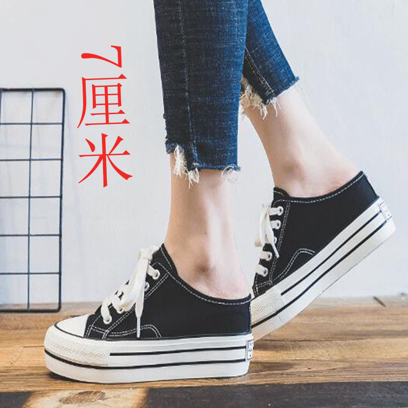 Celebrities with the same style without heel inner height-enhancing canvas shoes women's 2020 summer half-slippers thick-soled casual slip-on slip-on shoes