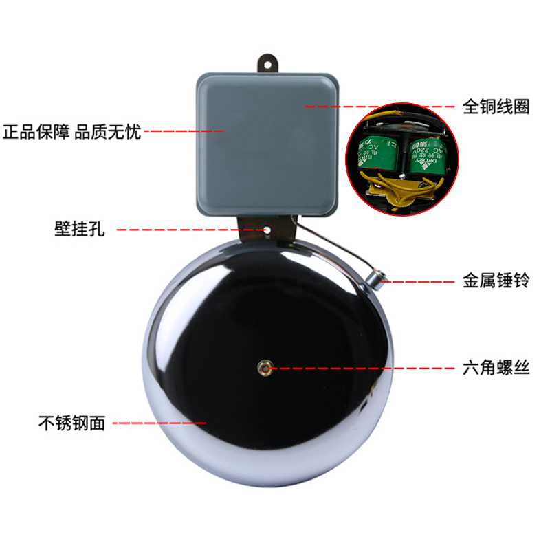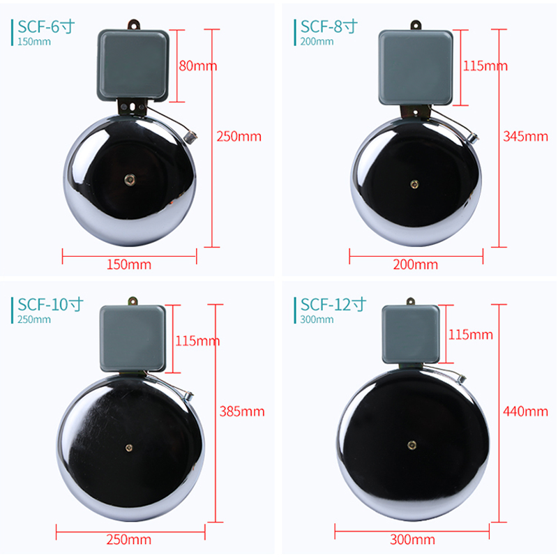 6 inch 8 inch 10 inch 12 inch no spark SCF external shock electric bell 220V stainless steel school bell up and down class bell