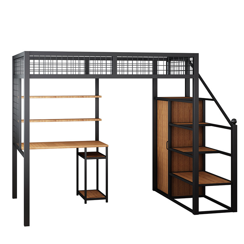 Iron Art High Shelf Bed small family type loft bed Lower table Home Adult Attic Bed Province Space Up And Down Bed-Taobao