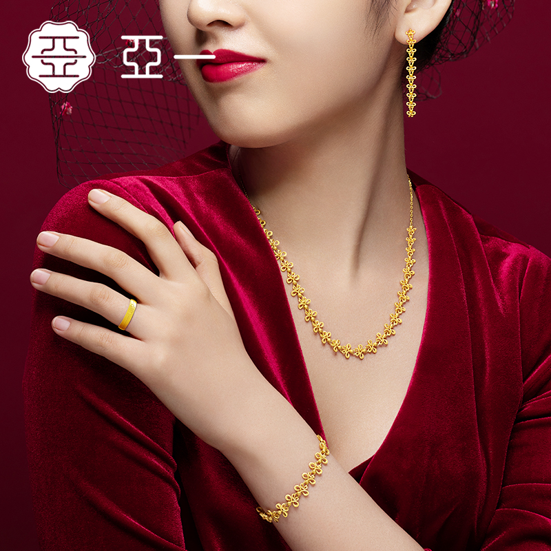 Subi Foot Gold Gold Necklace Bracelet for the wedding of the Luxury Style Kit Chain Wedding Three Gold