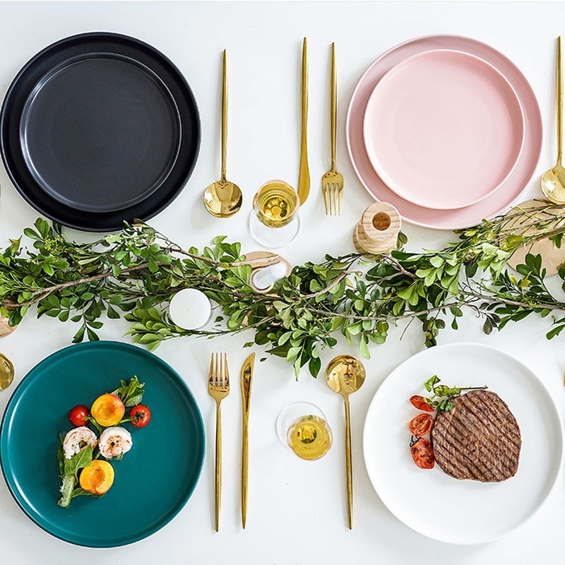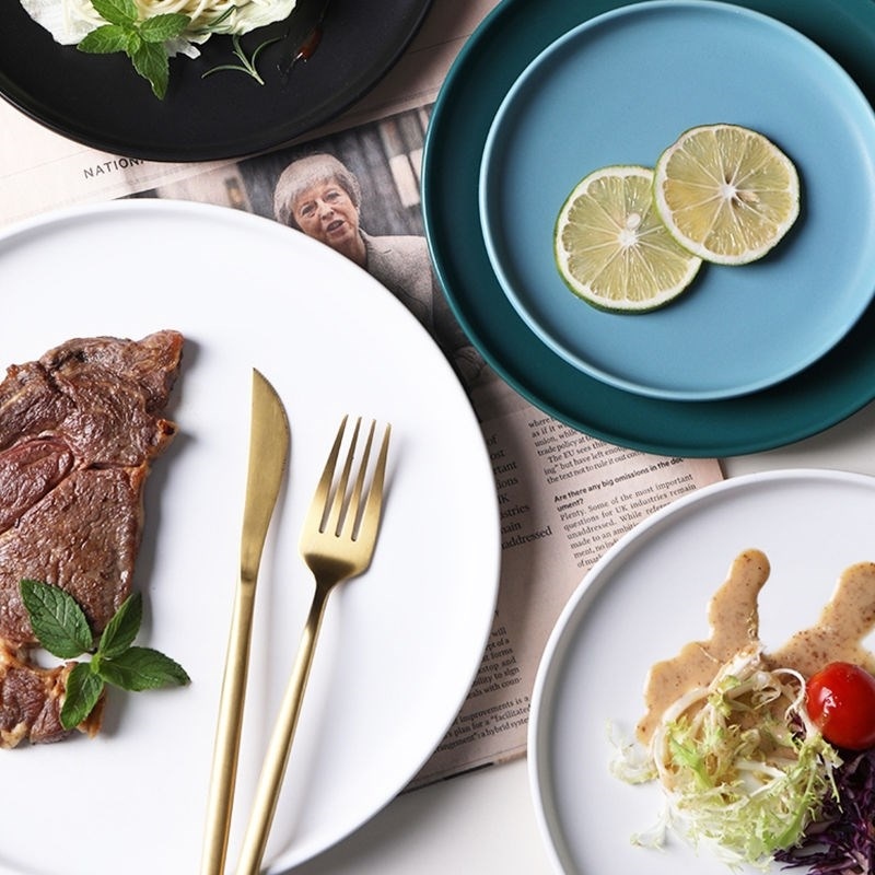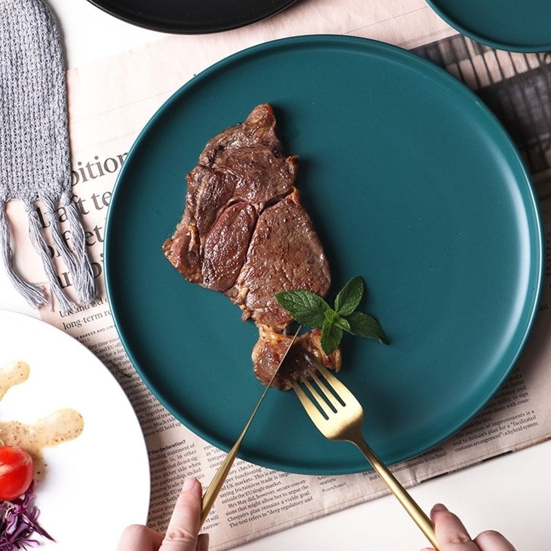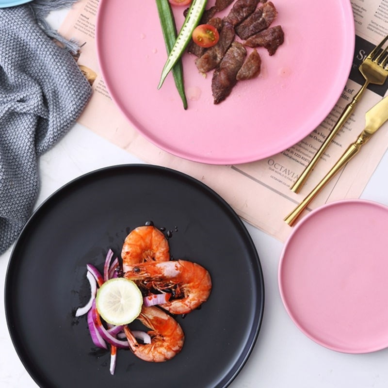 Macaron good-looking disc subnetting Red Porcelain Eurostyle Steak House Individuality Fruit Fish Pan Italian pasta flat tray