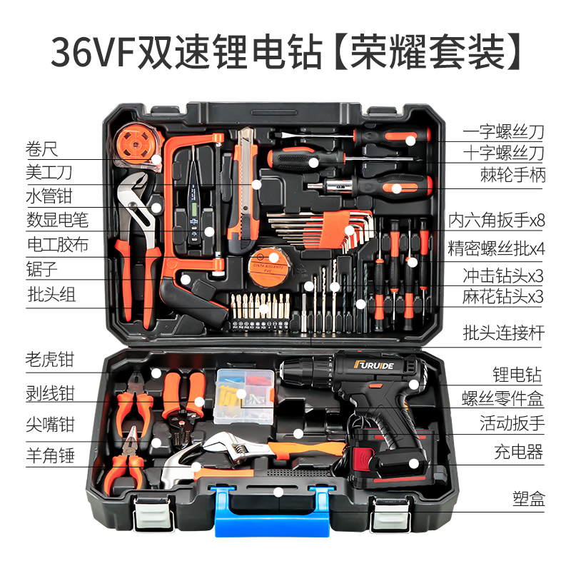 Fred daily household electric drill hand tool set Hardware electrician special maintenance multi-function toolbox Woodworking