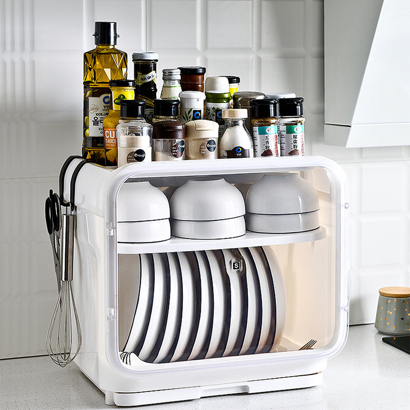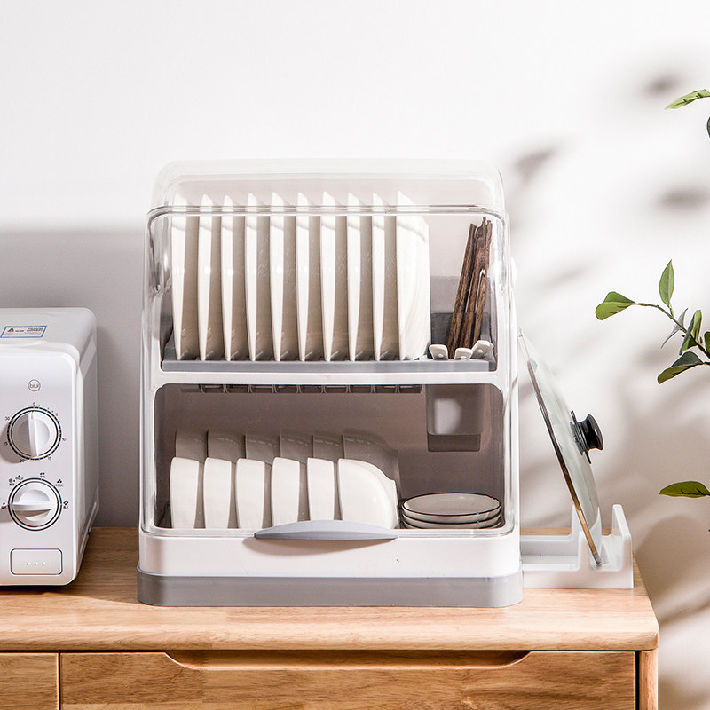 Tableware storage box with lid countertop bowl cabinet home kitchen multi-functional double-layer new draining dish rack