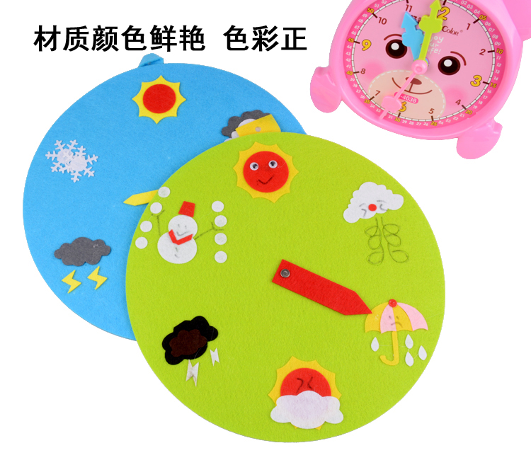 Weather Time Clock Teaching Aids Unwoven Cloth Weather Watches Teaching Models Kindergarten Children Handmade Puzzle materials