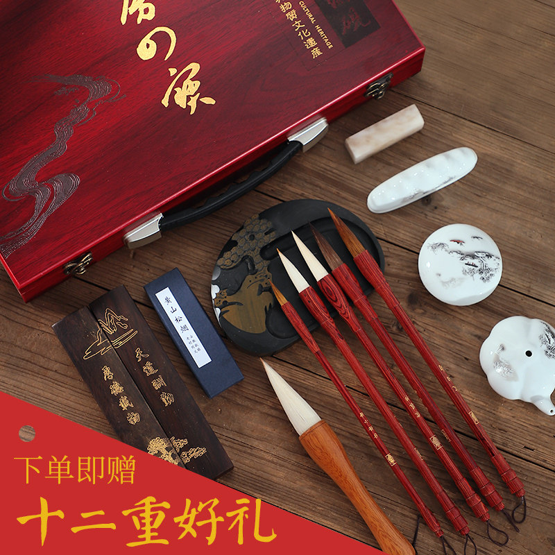 Brush set High-grade full set of professional-grade Wenfang four treasures gift box set Fine pen ink paper inkstone Wolf brush brush and Milli adult regular script law practice small Kai brush starter starter set