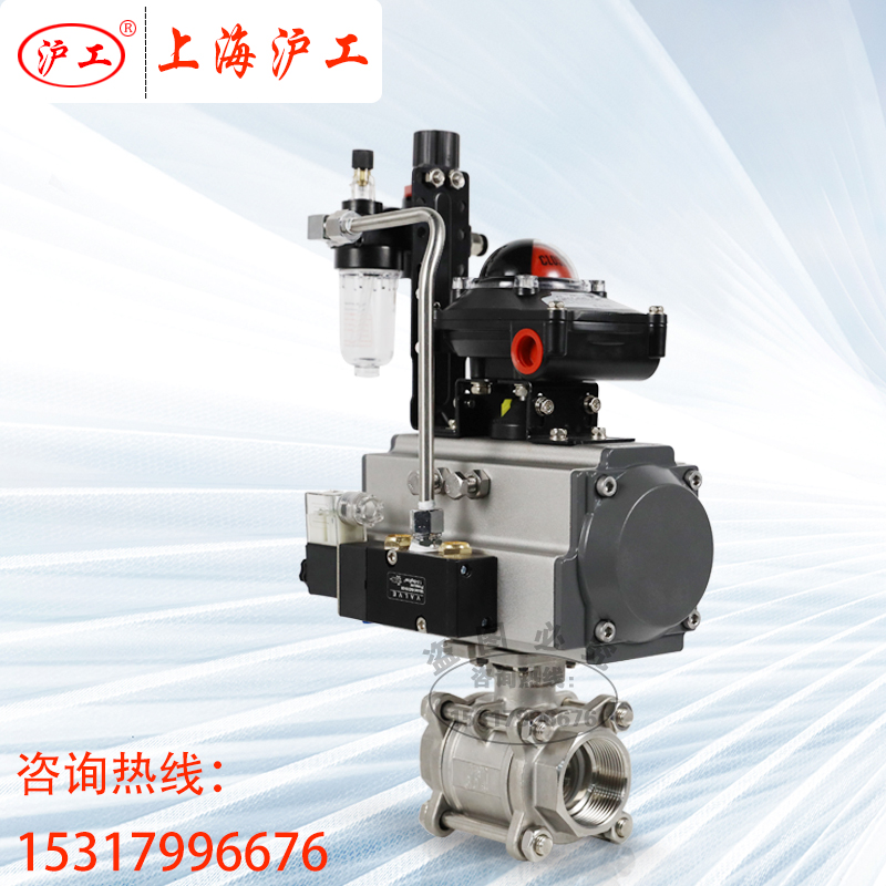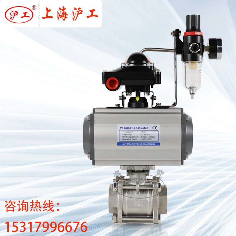 Shanghai Hugong Valve Stainless Steel 304 Three-Piece Pneumatic Filament Ball Valve Q611F-16P DN15 50 100