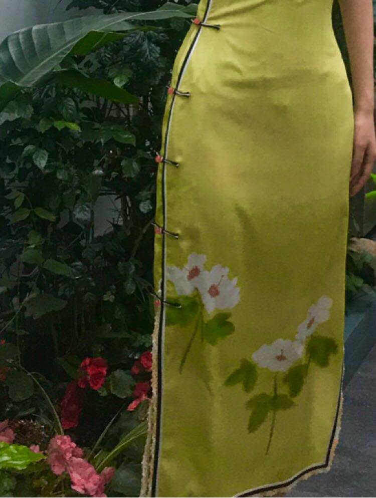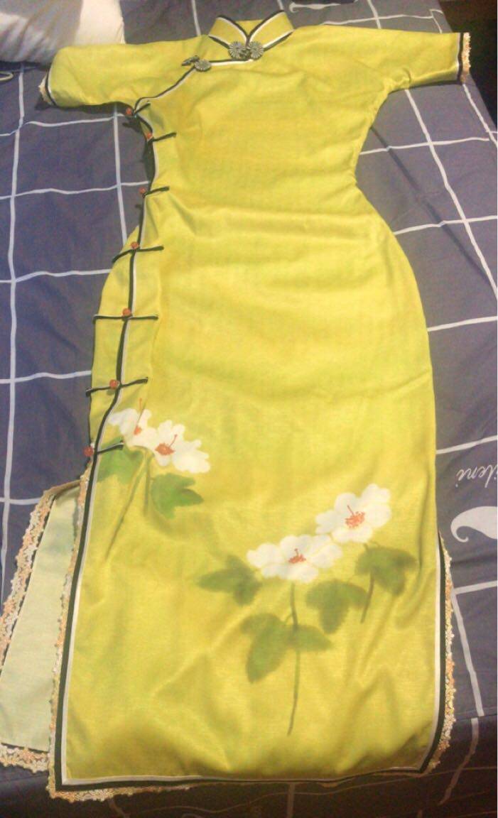 (Small yellow bottom flowers on the left and yellow flowers on the right)The Republic of China flat cut one-piece non-provincial cheongsam
