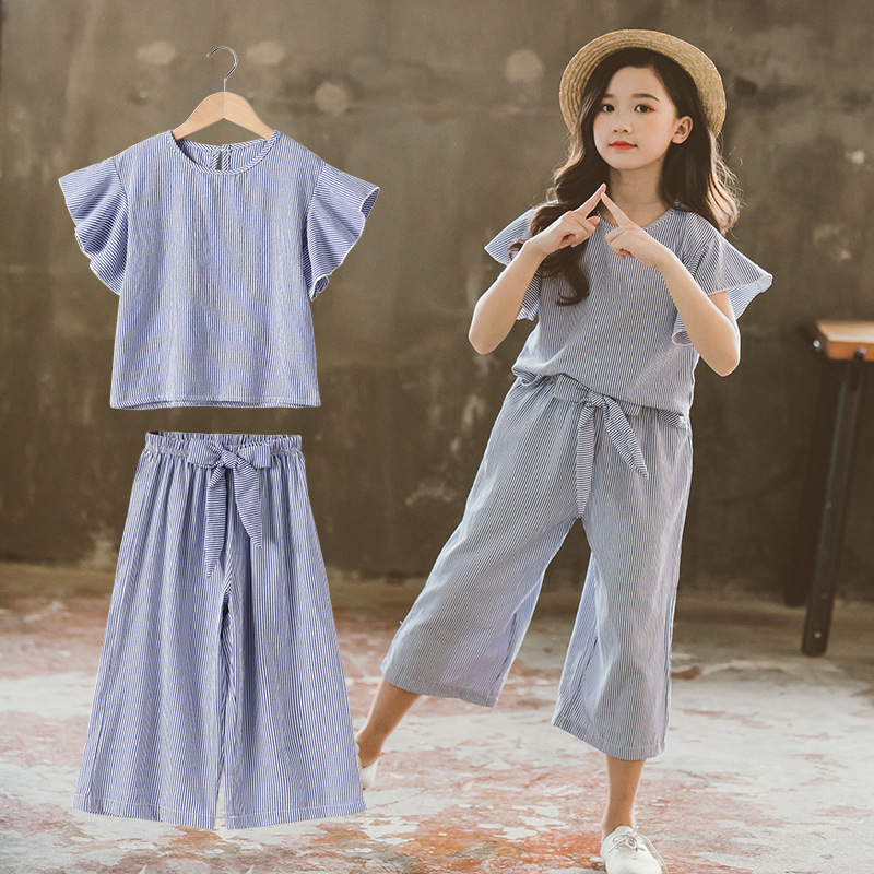 2021 Girls' Summer Dress New Trendy Suit Medium and Big Children's Super Western Style Short-sleeved Wide-leg Pants Two-piece Summer Trend