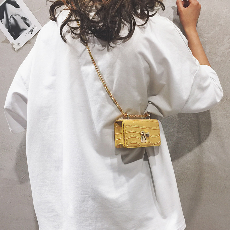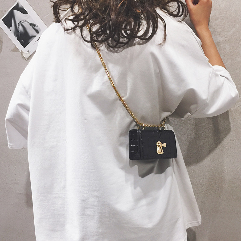 Mini small bag lady texture new 2022 genuine leather small square bag casual minimalist chain single shoulder inclined satchel wave