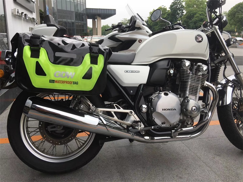 Full Waterproof Fluorescent Green Square Rider side bag pair of full waterproof grey black square knight Rider With a pair of full waterproof grey black arched Mirage Phantom Side Bag Pair