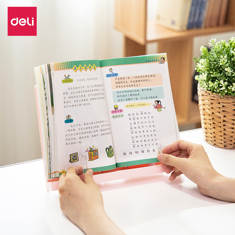 Deli children's reading rack Portable multi-function reading rack for primary school students with a book clip Creative correction posture correction reading rack