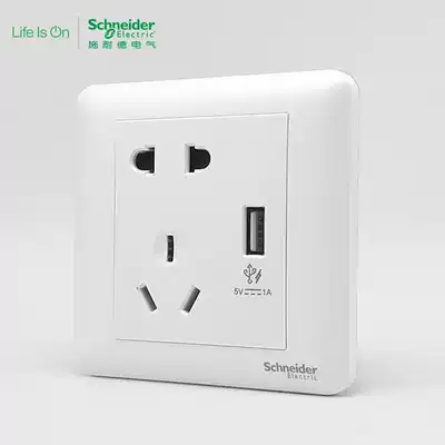 Schneider USB socket smooth frosted white USB five-hole two-three-pole switch five-hole USB 1A