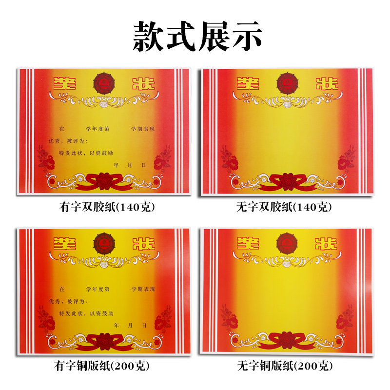Thickening Excellent Three Good Students Awards Customized Print Elementary School Children Kindergarten Blank Handwriting A4 Copper Plate Paper Double Gum Paper Junior High School Teachers Handwritten Wholesale Award Certificate of Honor Certificate