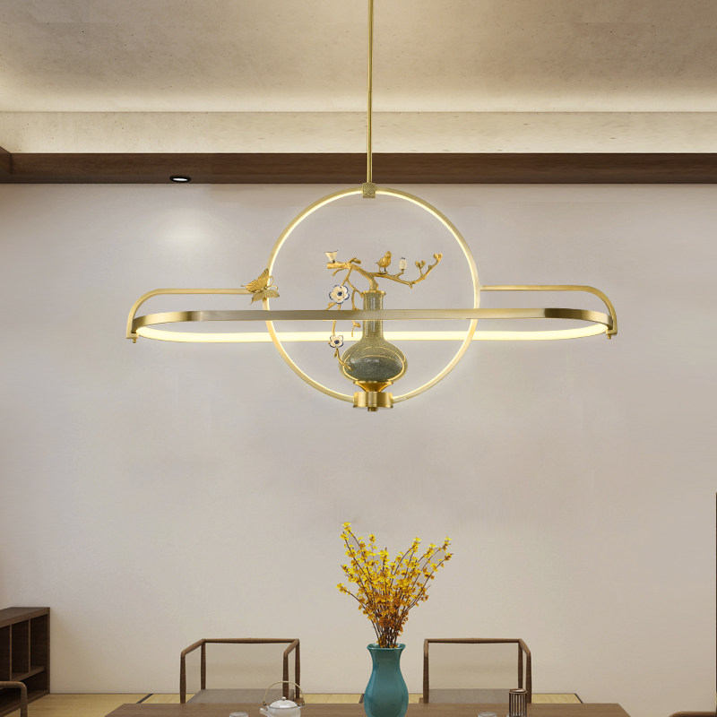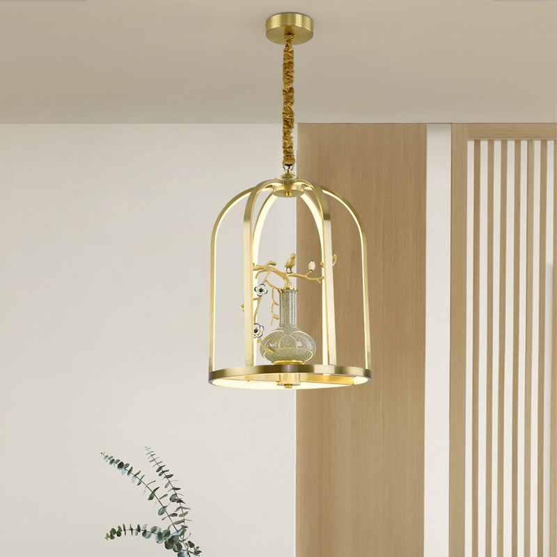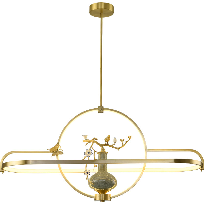 Lou Guangge all copper new Chinese chandelier porch tea room Zen ceramic lamps light luxury creative personality dining room chandelier