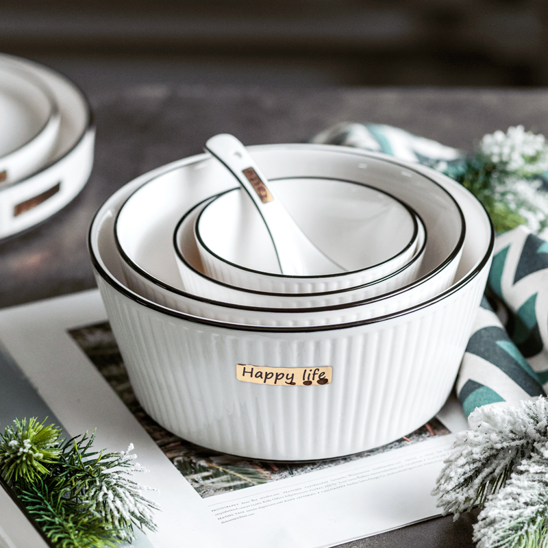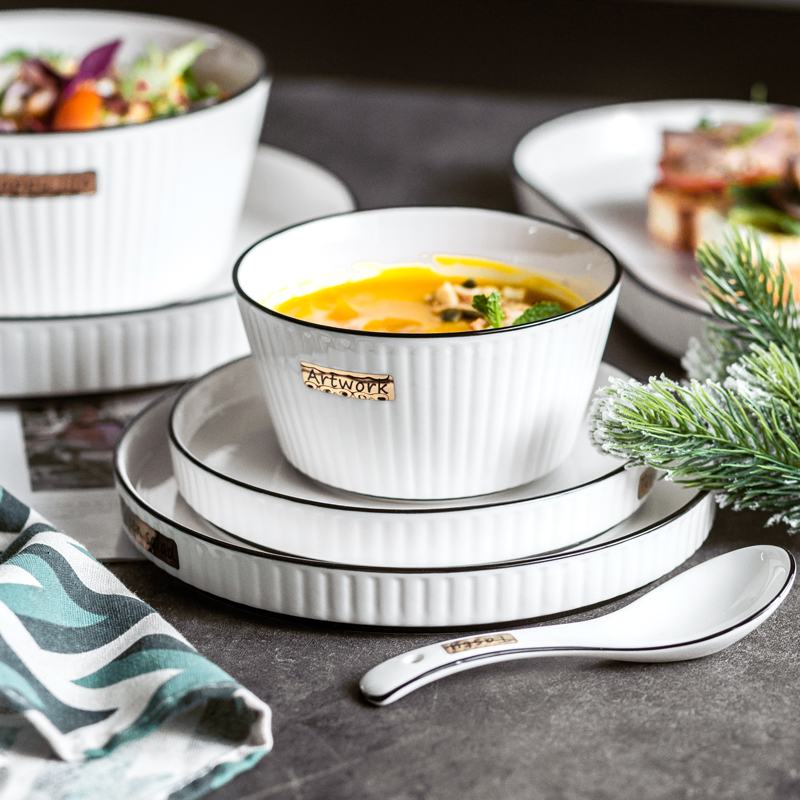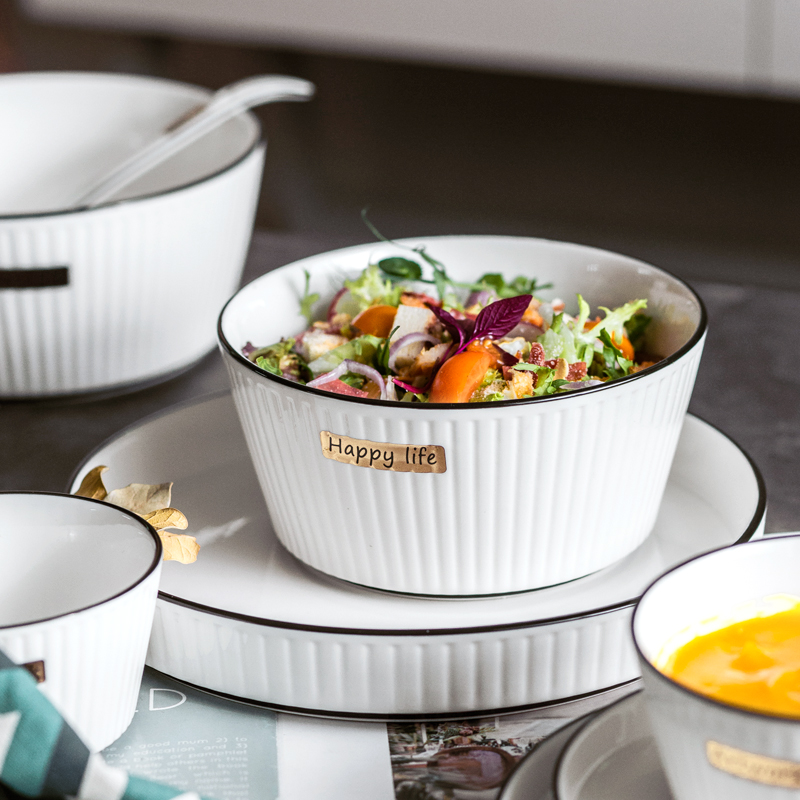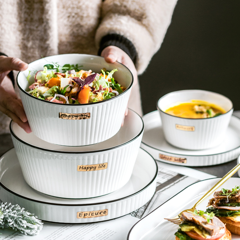 Soup plate Western food plate plate Breakfast household salad bowl Nordic Japanese ceramic tableware Large soup bowl Instant noodle bowl Rice bowl