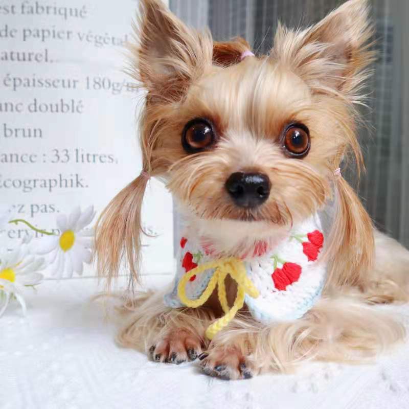 Pet Wool Woven Cherry Lace Shawl Pet Neck Yorkshire Marzis Muppet Neck Decoration