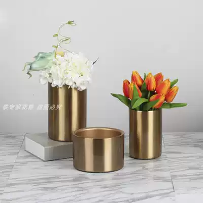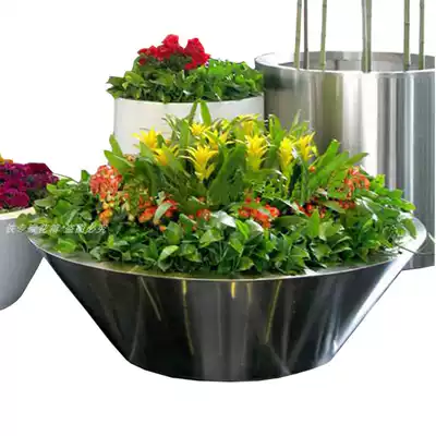 Outdoor shopping mall Meichen Hotel lobby stainless steel flower metal combination flower box sample house display center flower bed cylindrical flower pot