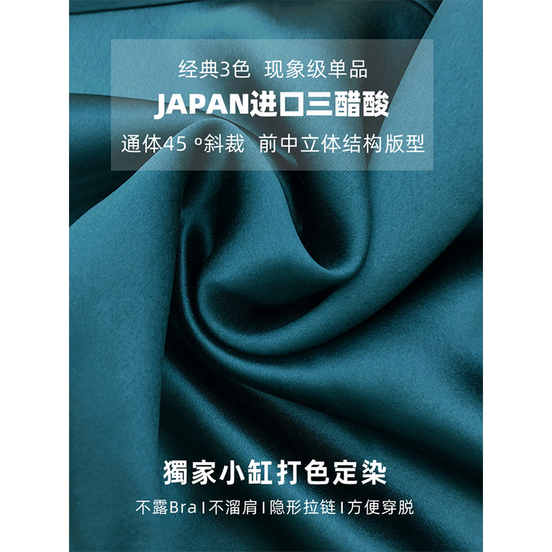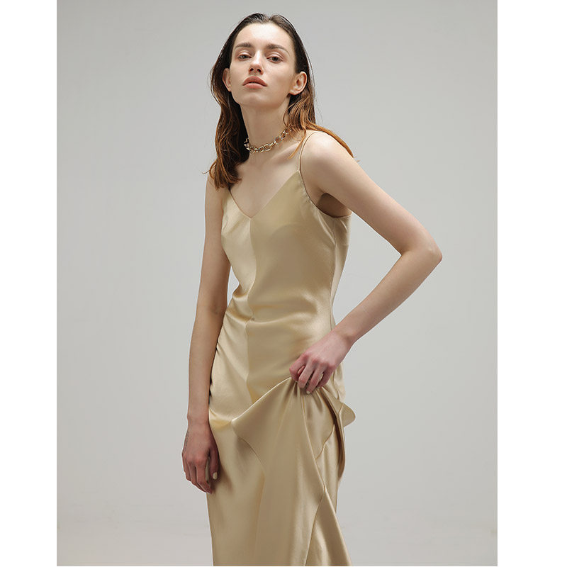 SOULKISS triacetate 45° oblique cut long skirt v-neck suspender dress women's summer