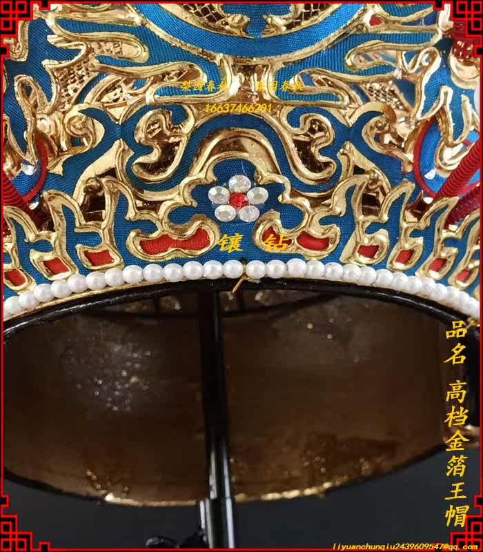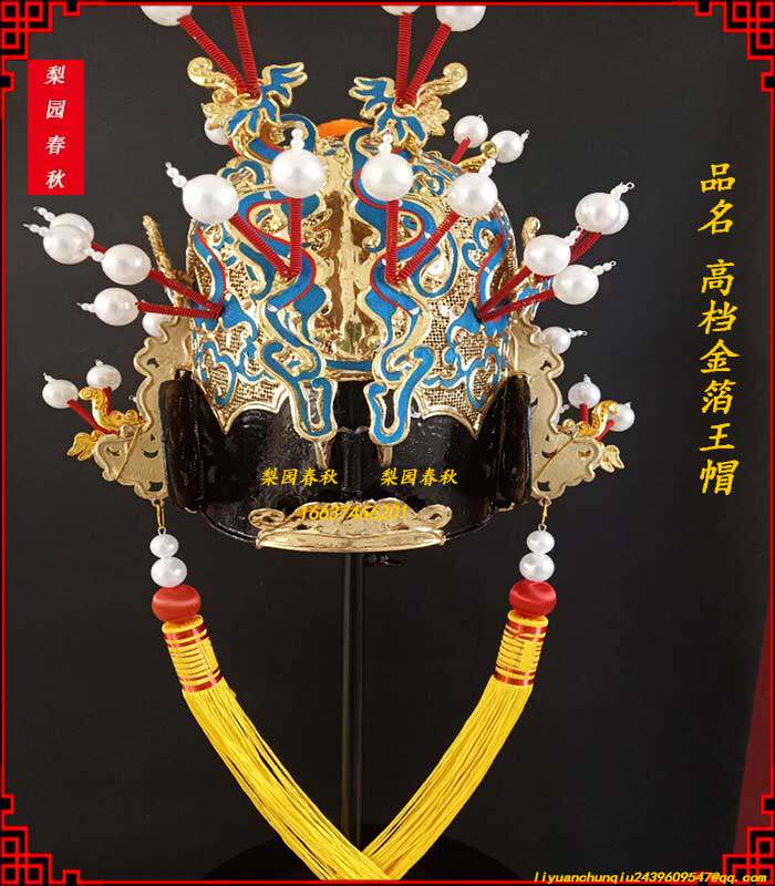 Drama and opera supplies Prince hat Helmet Baxian King Jiulong Crown Emperor Hat Handmade silk paste Gold leaf Gold King hat