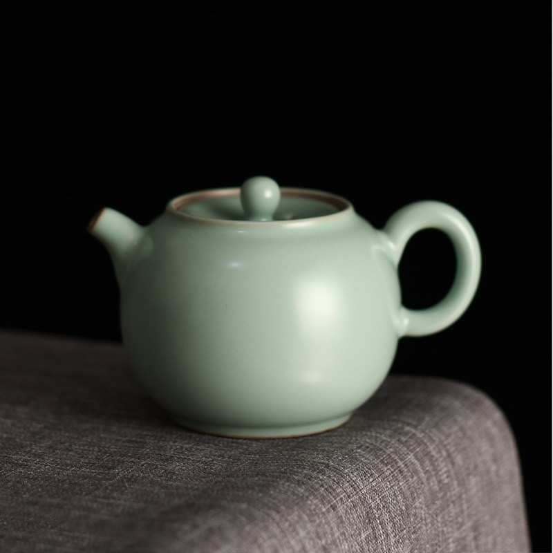 Ru Kiln Teapot Kongfu Tea Furniture Day Style Handmade Single Pot Ru Porcelain Open Sheet Capable Of Raising Ice Cracking Glaze Green Porcelain Ruyi