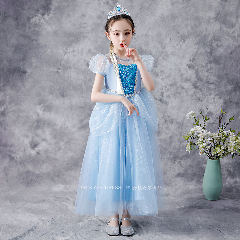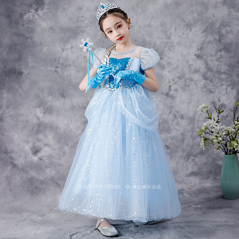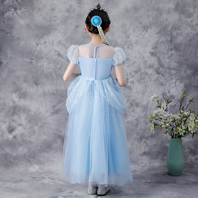 Girls Elsa Princess Dress Cinderella Summer Dress Frozen Children's Birthday Dress Puffy Yarn Elsa Long Dress