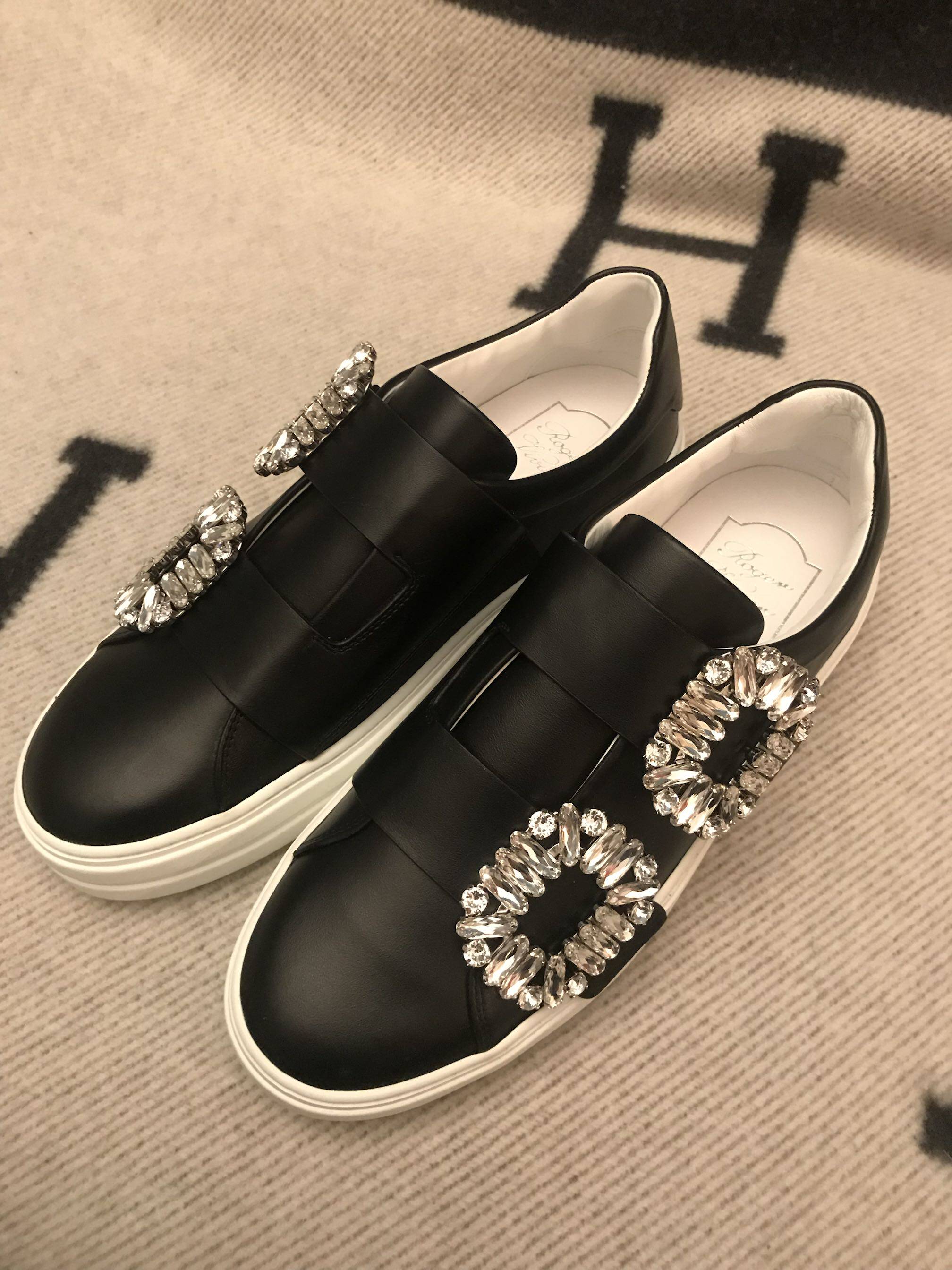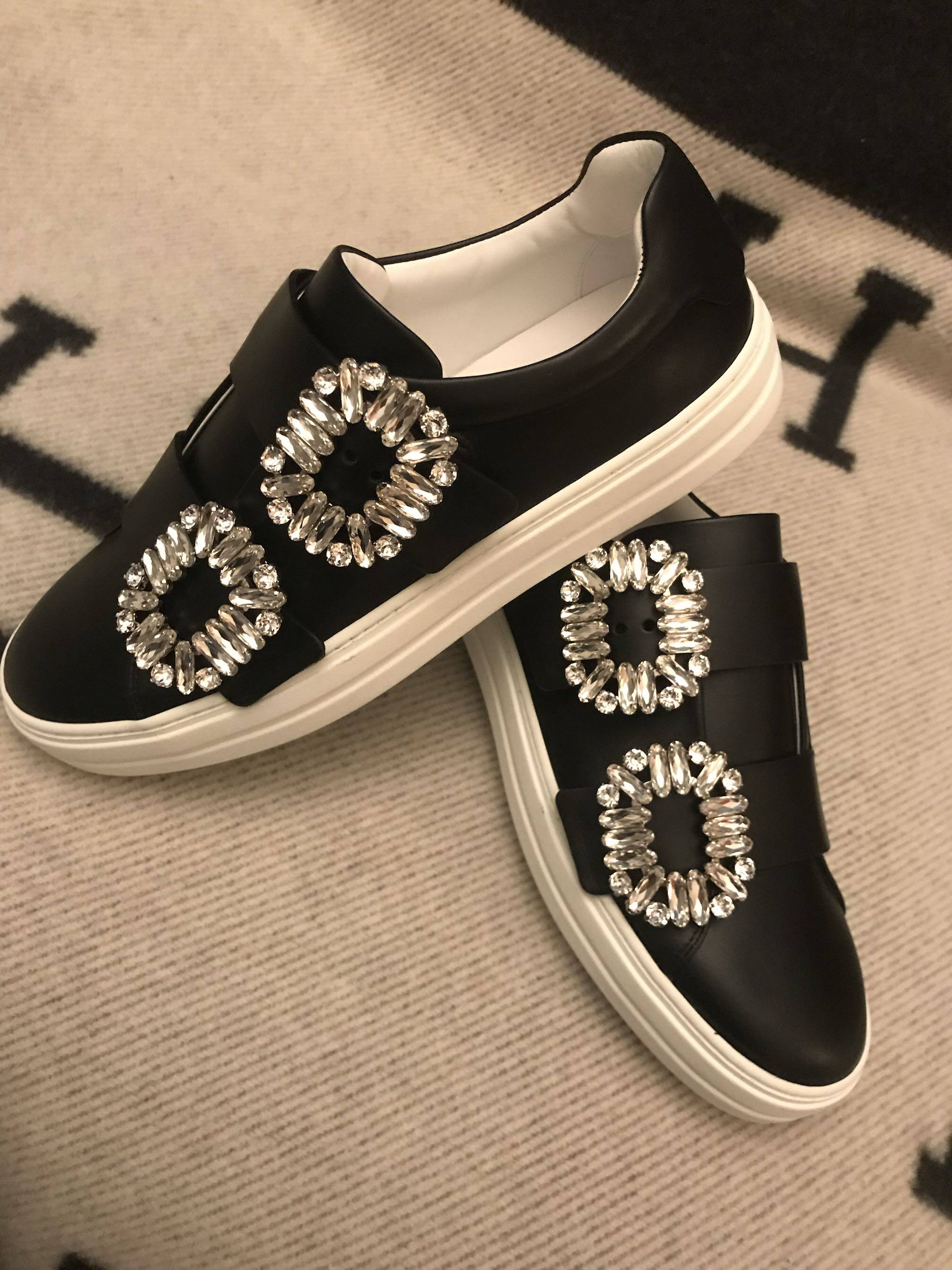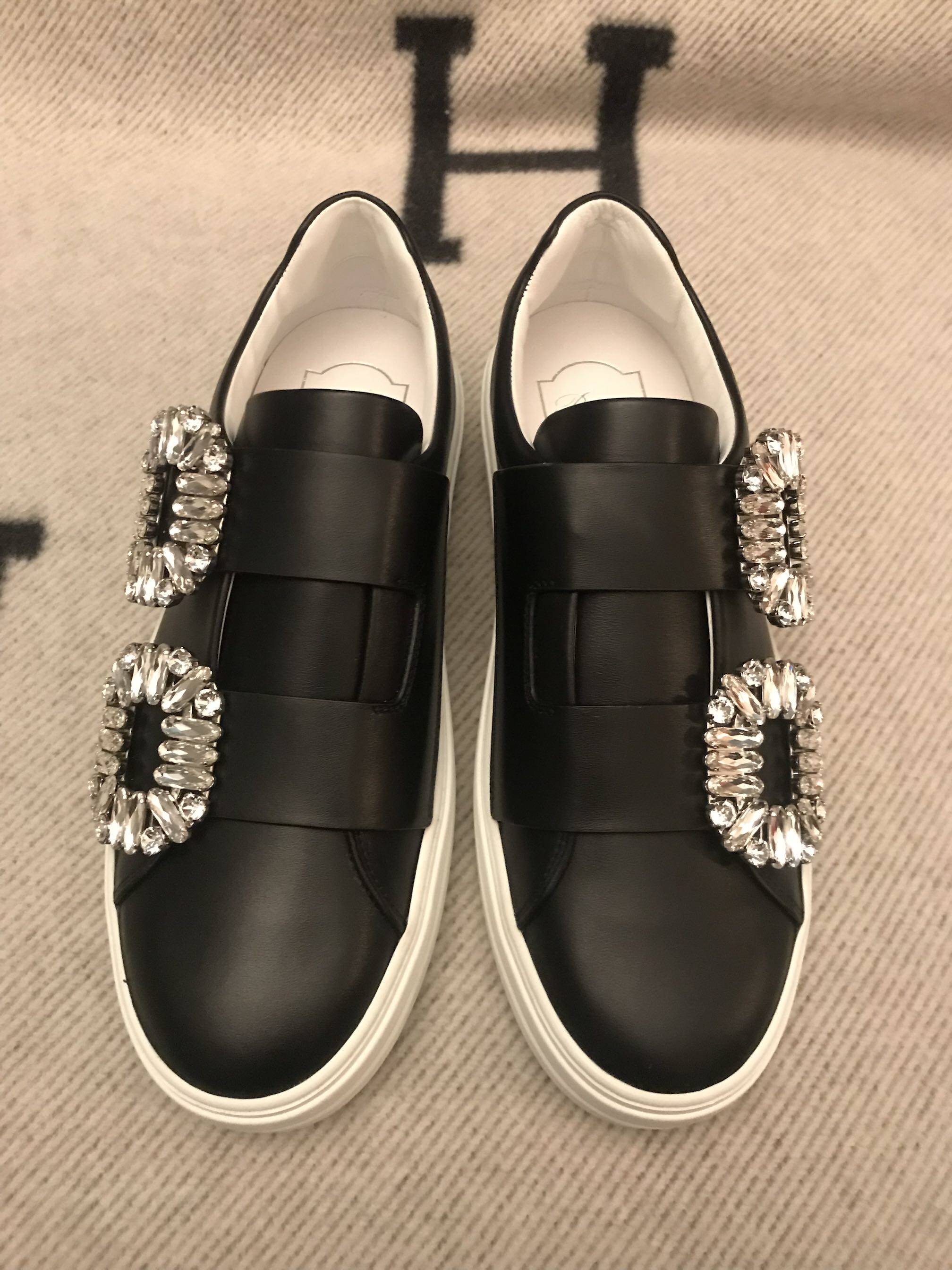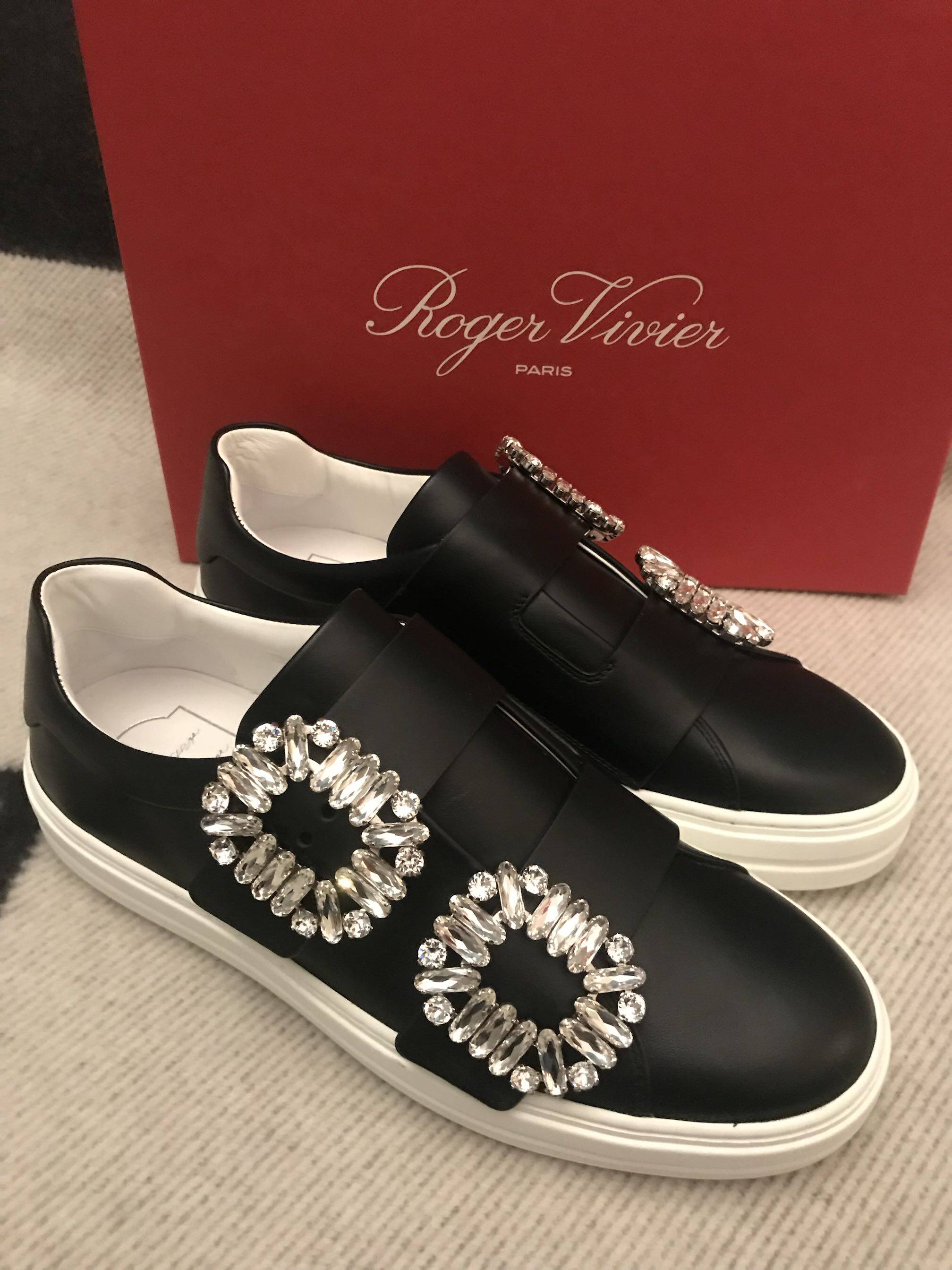 roger vivier black matte leather double breasted sneakers domestic spot