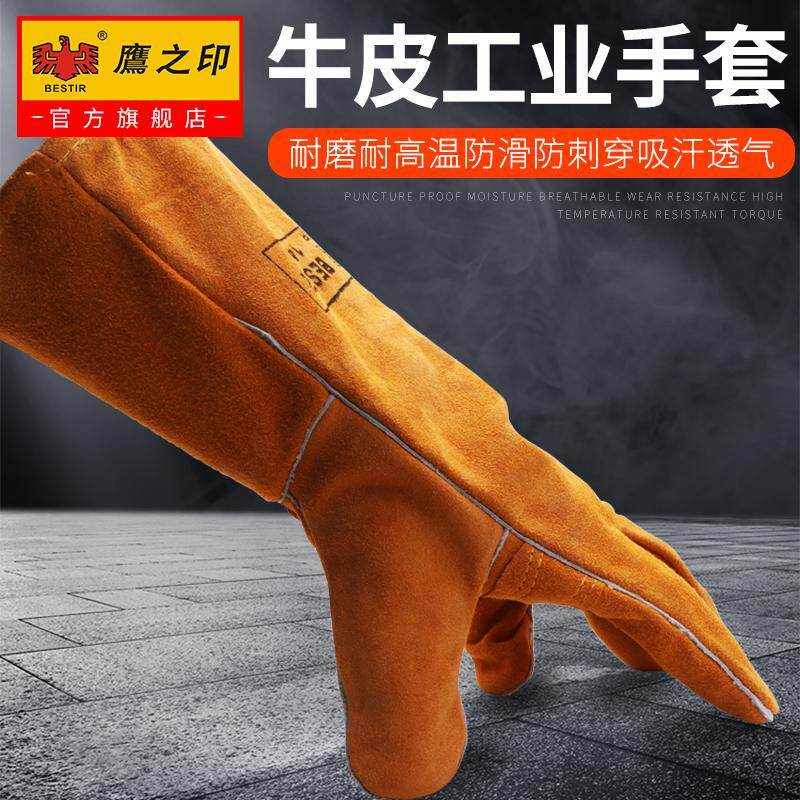 Eagle print welding gloves long two-layer full cowhide short welder heat insulation labor protection protection handling gloves