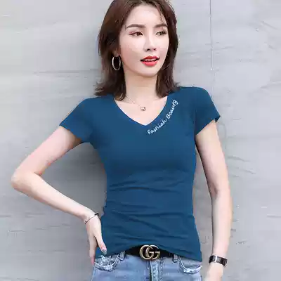 Korean cotton white T-shirt women short sleeve slim summer 2021 new chicken heart V collar tight base shirt coat tide