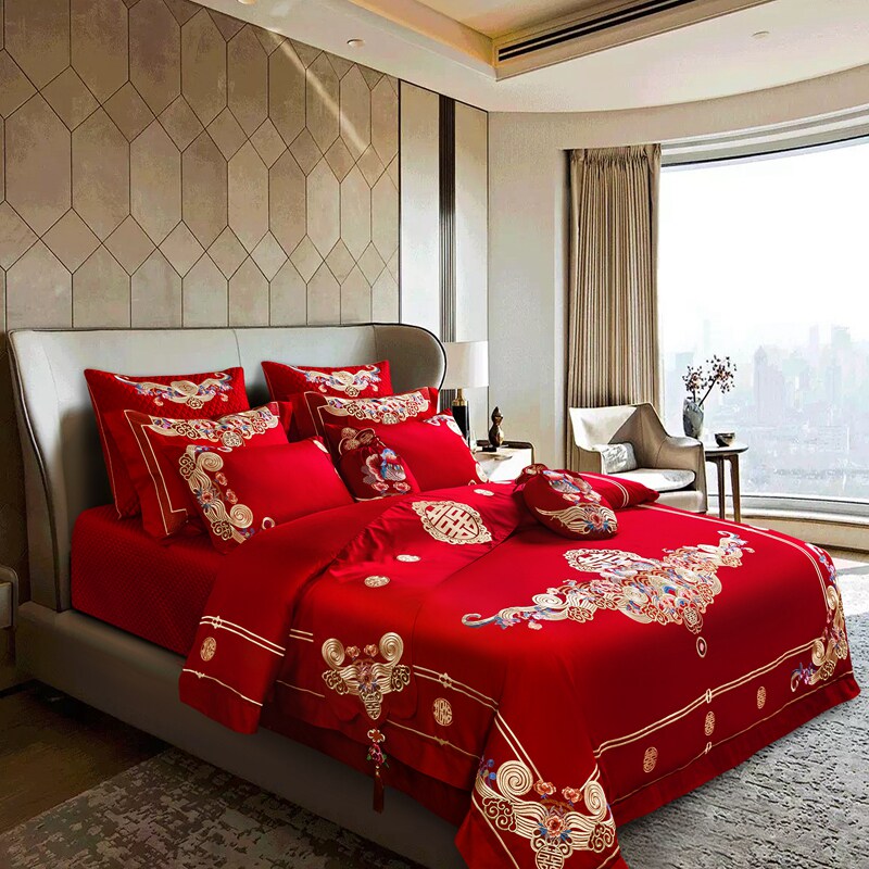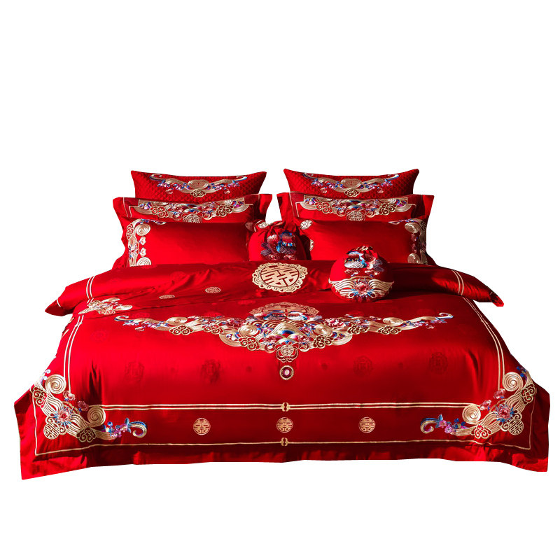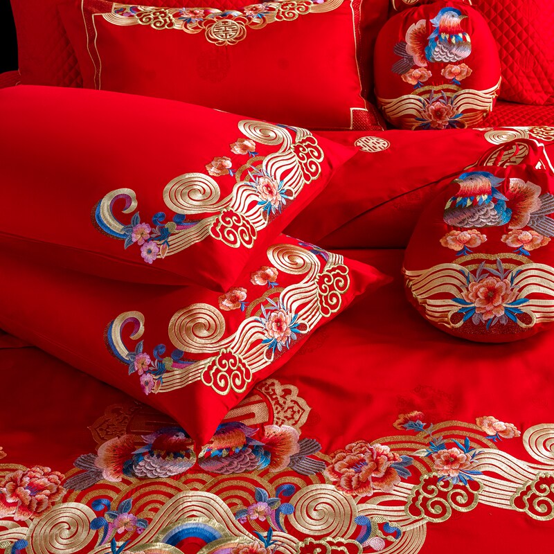 New Wedding Celebration Four Sets Big Red Mandarin Couple Newlywed Six Pieces Of Wedding Quilt Wedding Bed Accessories twelve pieces of kit