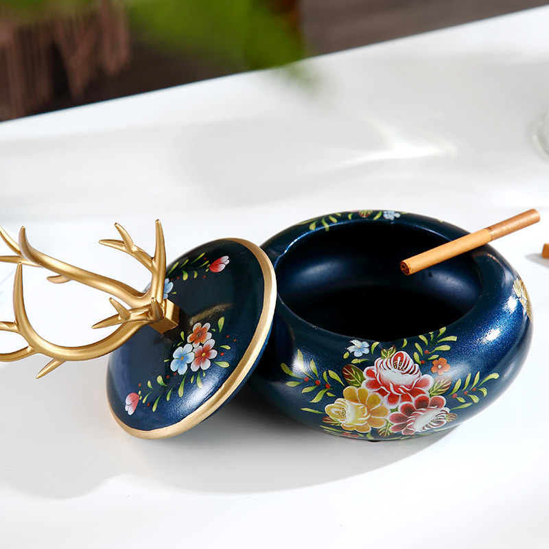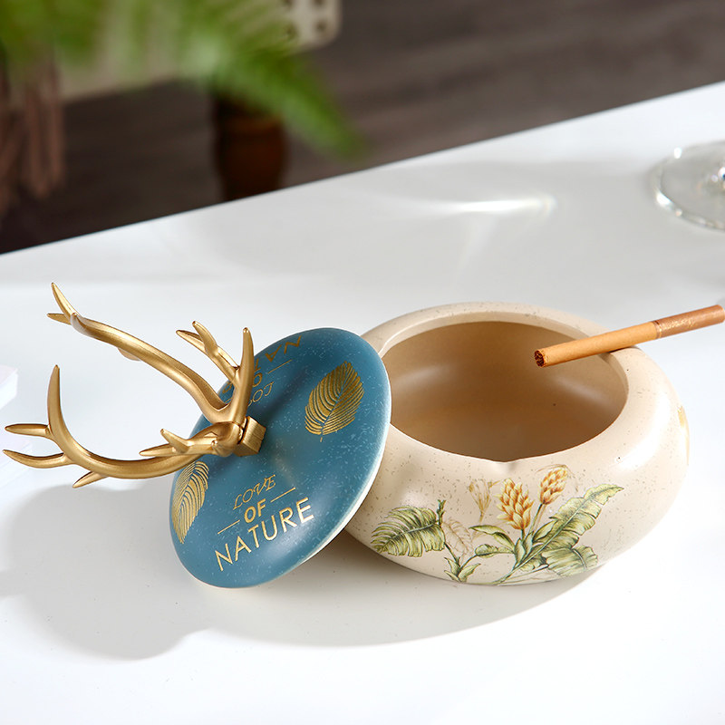 Nordic modern ceramic ashtray large-scale with lid living room office tea couple with wind-proof lid cigarette ashtray