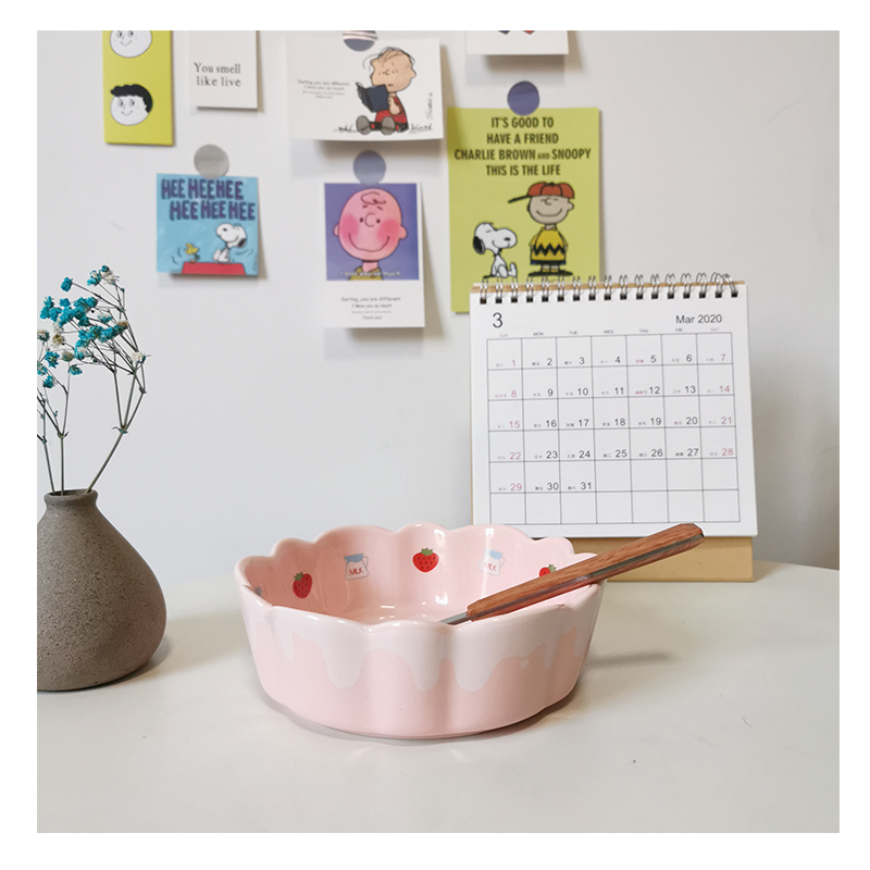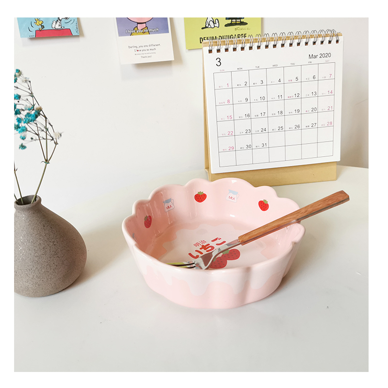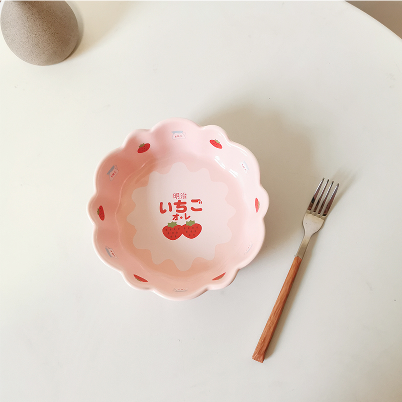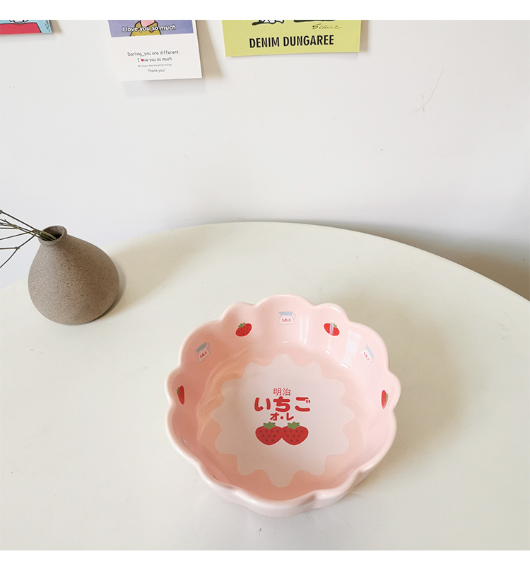 Small Fairy Japan Meiji Strawberry Girl Hearts Salad Bowl Fruit Snacks Bowl Pink Strawberry Ceramic Bowls Ins