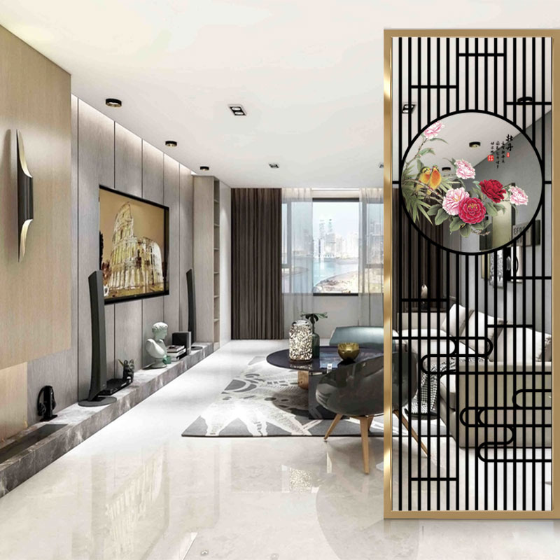 Chinese art glass screen partition wall custom minimalist modern living room Xuanguan frosted double-sided steel chemical process