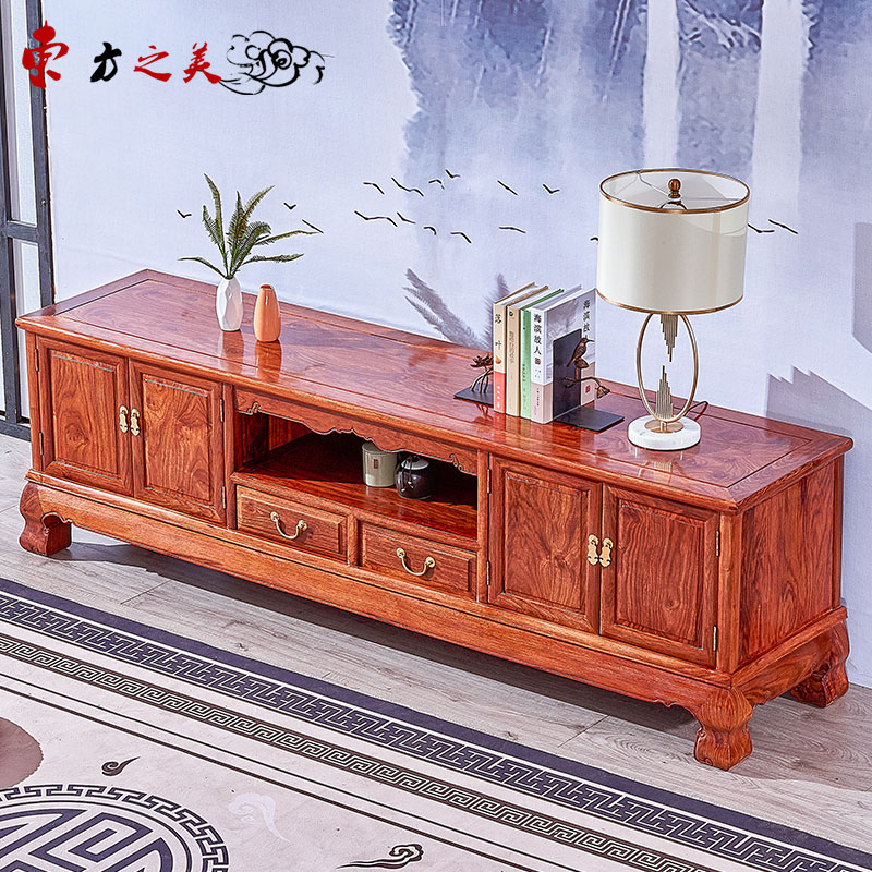 Red wood furniture New Chinese flower pears wood TV cabinet Ming and Qing antique solid wood bedroom containing ground cabinet living-room TV cabinet