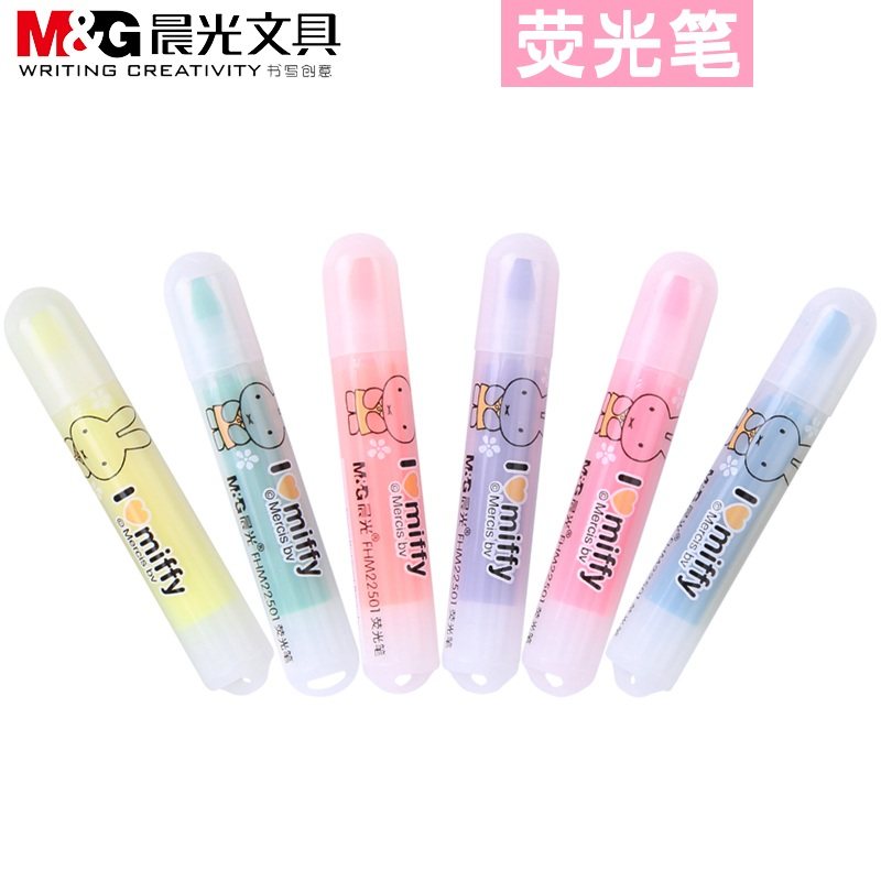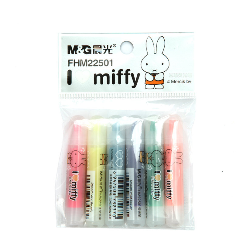 Morning light FHM22501 color fluorescent pen Miffy six color fluorescent pen eye-catching pen marking pen set of 6 mini fluorescent pens Primary school student fluorescent pen color marker pen rough stroke focus coloring