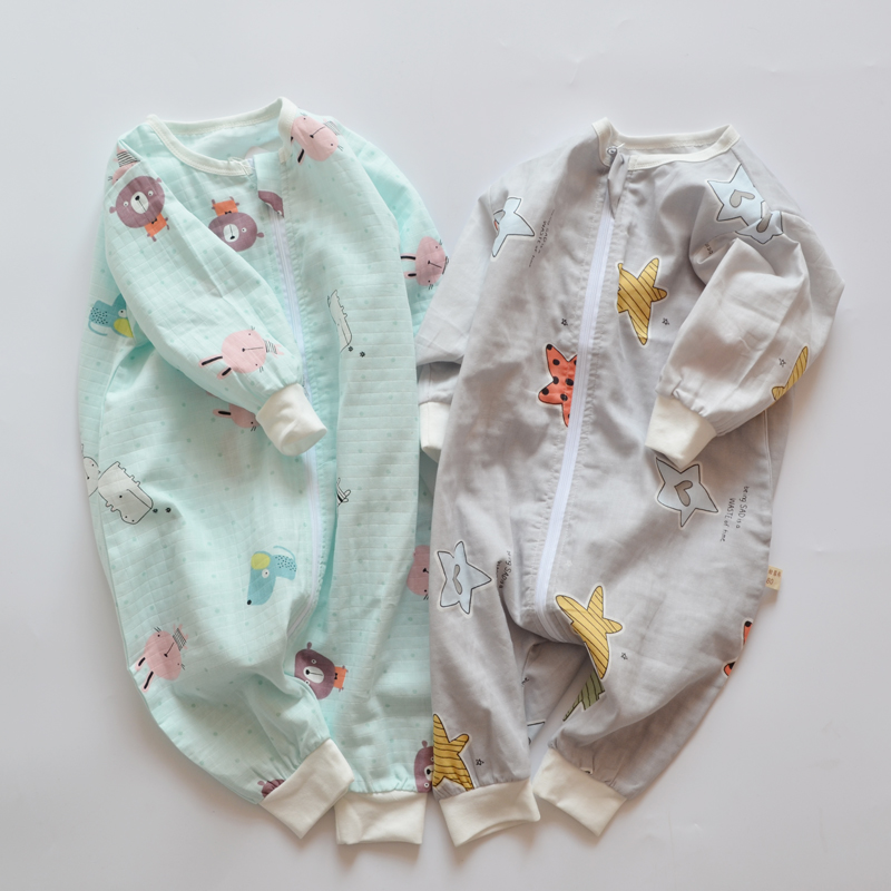Baby double layer pure cotton cotton cloth sleeping bag divided leg Children's baby anti-kick by theyser Summer thin Medium Boy Spring Summer
