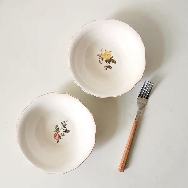 Little Fairy's Cup Shop Outside D American Retro Vintage Flower Pattern Ceramic Bowl Jam Seasoning Yogurt Bowl