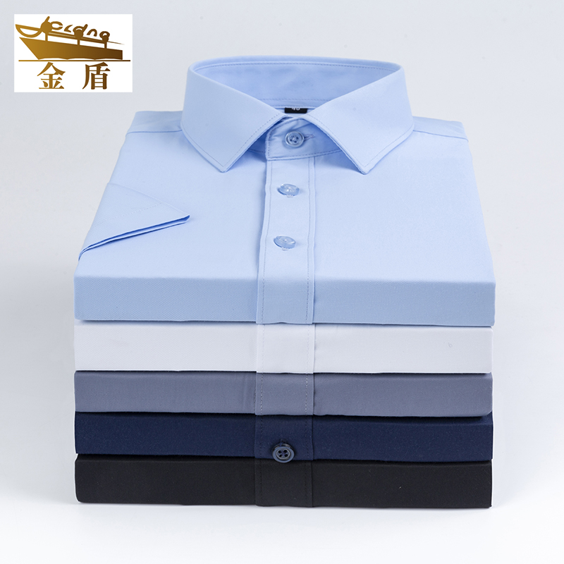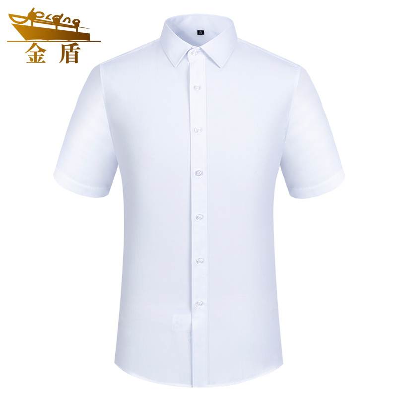 Golden Shield Men's Summer White Shirt Half Sleeve Pro Business Positive Dress Korean Version of work Overalls Short sleeves Black
