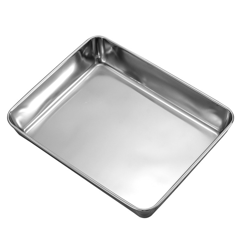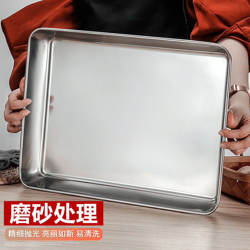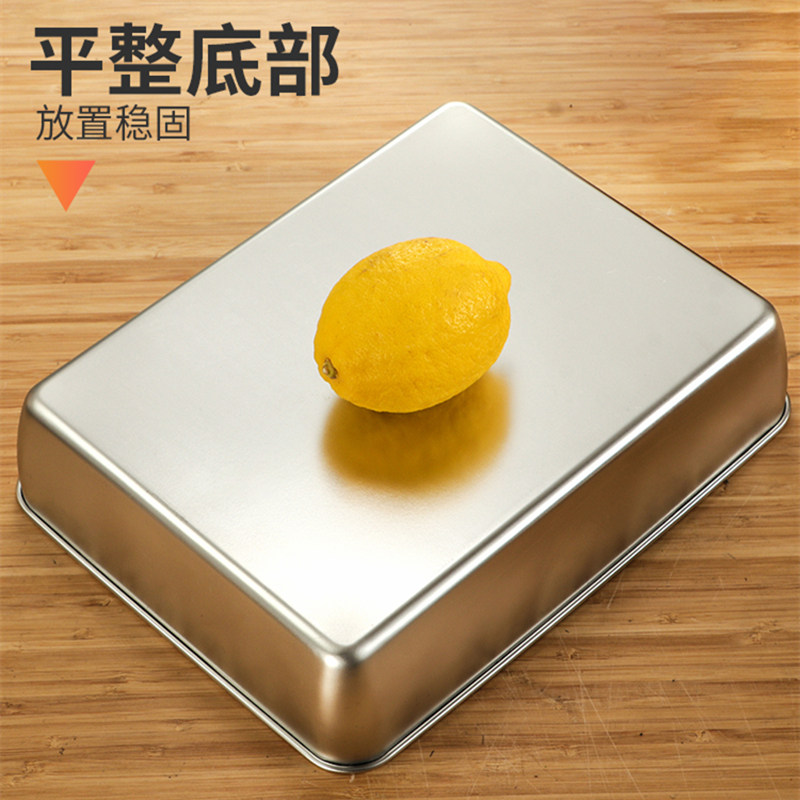 304 square plate stainless steel flat bottom rectangular narrow side plate steamed cake Ejiao plate cold fast food dish basin thickened tray