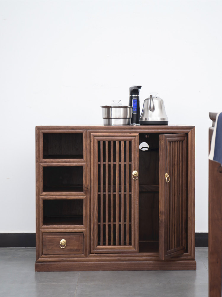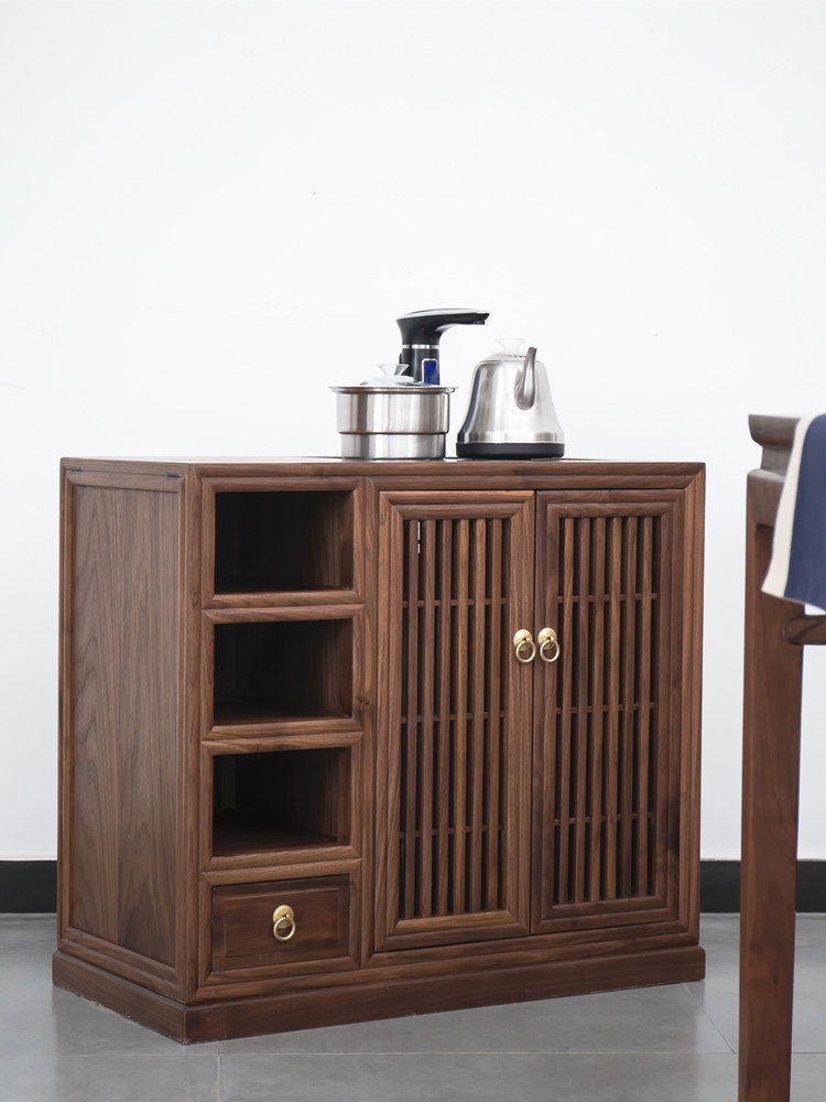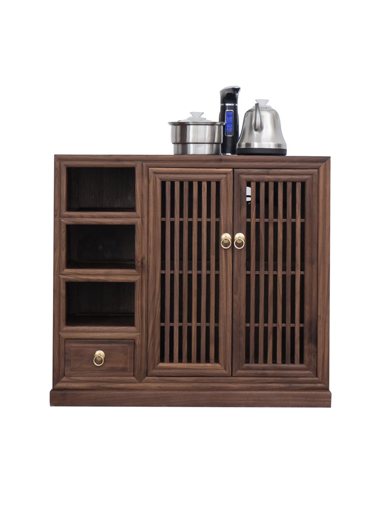 New Chinese style solid wood tea cabinet old elm dining cabinet log Tea side cabinet short cabinet tea table walnut color furniture