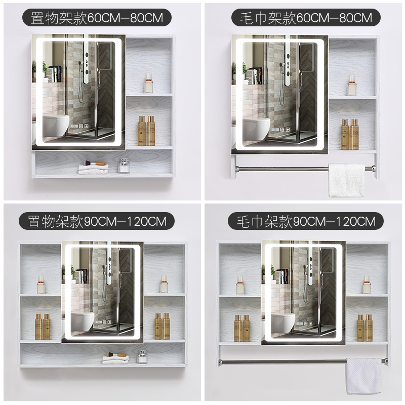 Smart Bathroom Mirror Cabinet Toilet Makeup Room Anti-Fog Belt Lamp Mirror Case Hanging Wall Style Containing Cabinet Bathroom Make-up Mirror