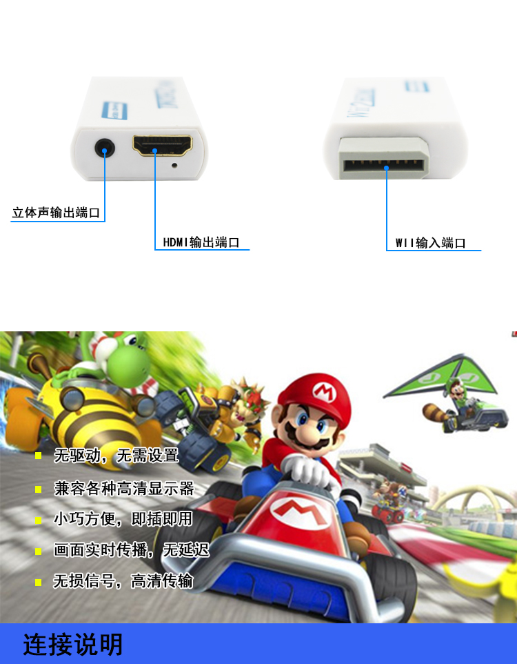 Wii to HDMI converter WII2HDMI wii console connected to HD DHMIi monitor TV