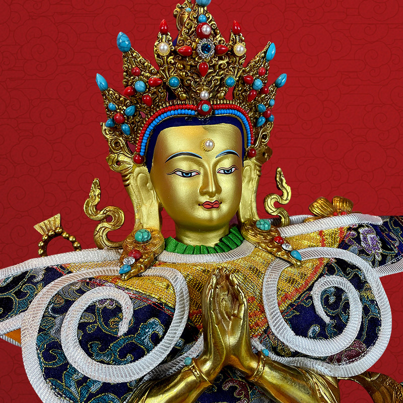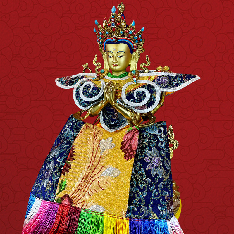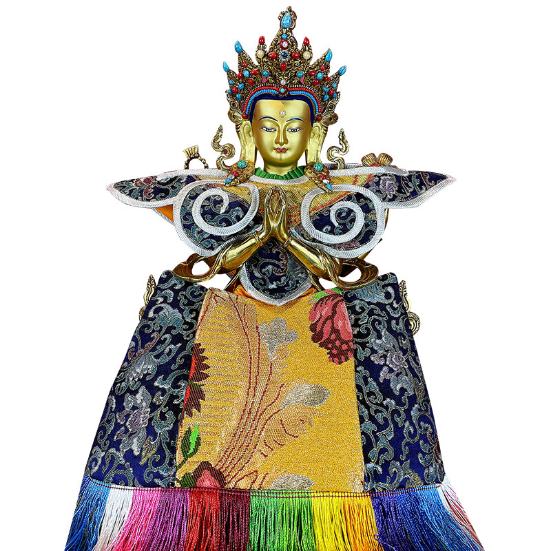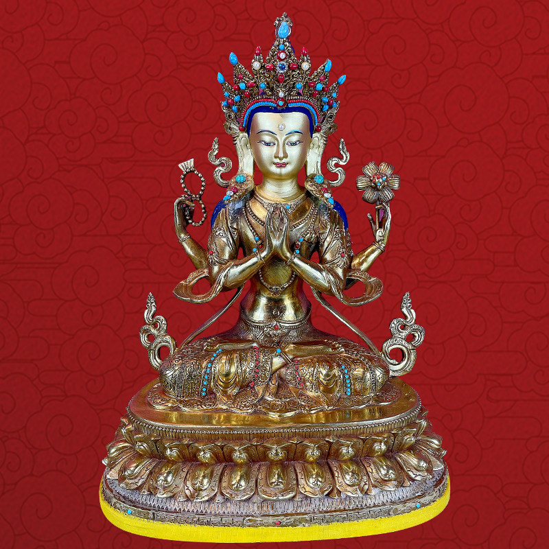 Tibetan Tantra four - arm watch copper Buddha statue household Buddha with a gold - wire clothes high 33cm